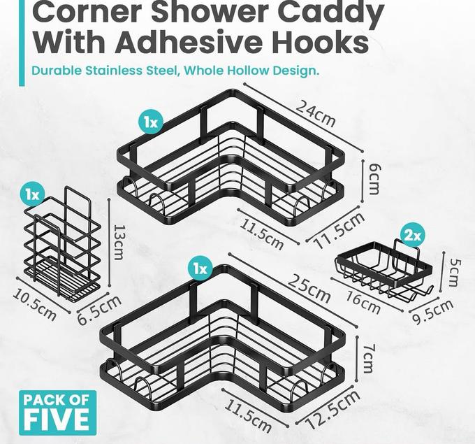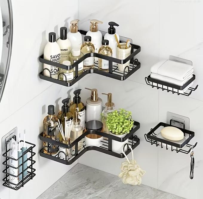 5 قطع رفوف كوان لتنظيم الحمام المعدنية إينوكس